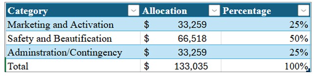 Capital improvements: Streetscape improvements, public art installations, and façade renovations.